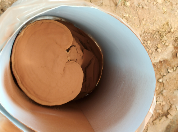 灵芝已经开始喷粉了,每个灵芝身上已经裹上了厚厚的粉,过两天就可以收粉了。